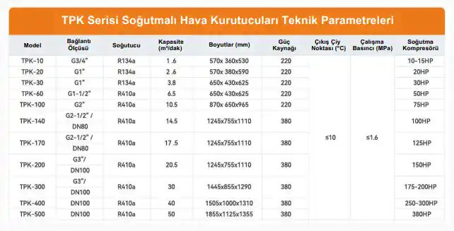 endüstriyel üretimde vazgeçilmez bir rol oynamaktadır. Gelişmiş soğutma teknolojisi kullanılarak, basınçlı hava içerisindeki su buharı yoğuşturularak sıvı suya dönüştürülür ve tahliye edilir. Bu sayede kuru ve temiz basınçlı hava elde edilir.